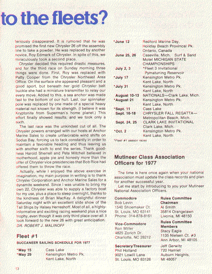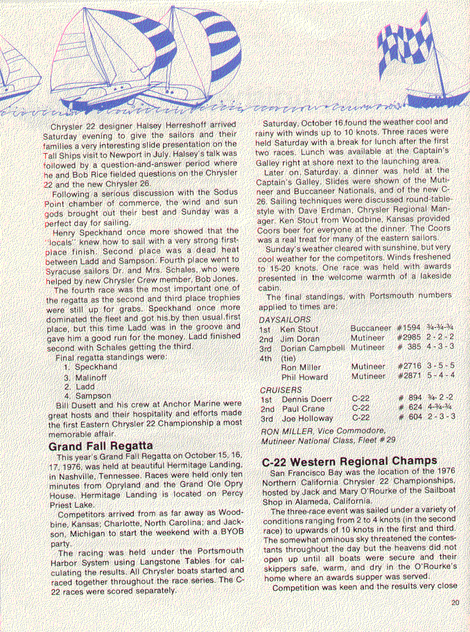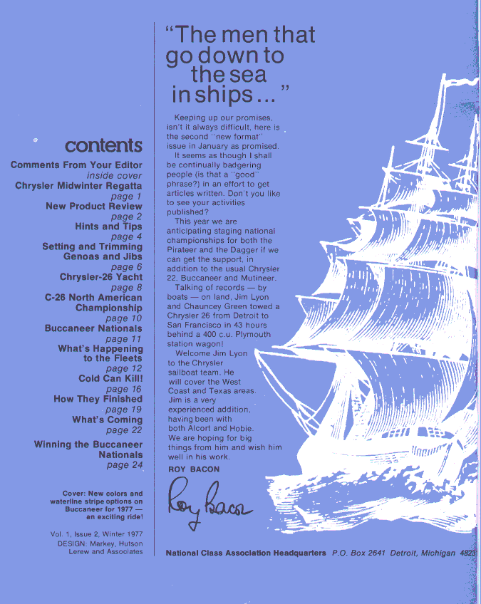 A publication dedicated to Chrysler sailboat owners and dealers. These editions cover the span of time from 1974 through 1978, the high point in the production of Chrysler sailboats.