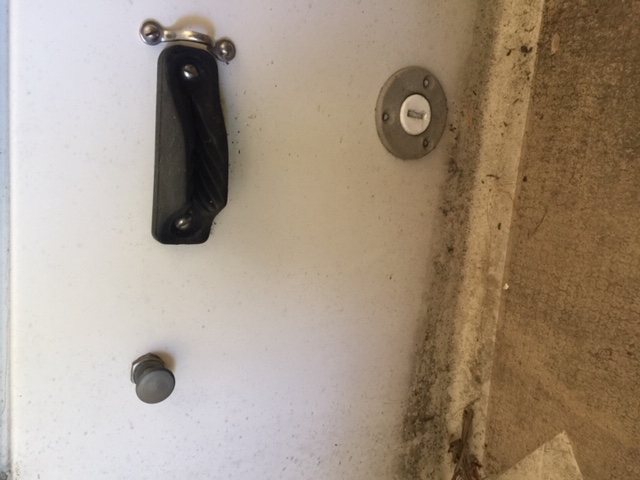 Could someone in the Chrysler braintrust please identify the objects at top left and bottom right of first photo below? They are located on lower portion of the port side of cockpit near the transom of my C22. Second photo of the back sides is taken from inside the lazarette. I have been looking at C22 photos and see them on some of the boats but not all of them. Any help will be greatly appreciated!
