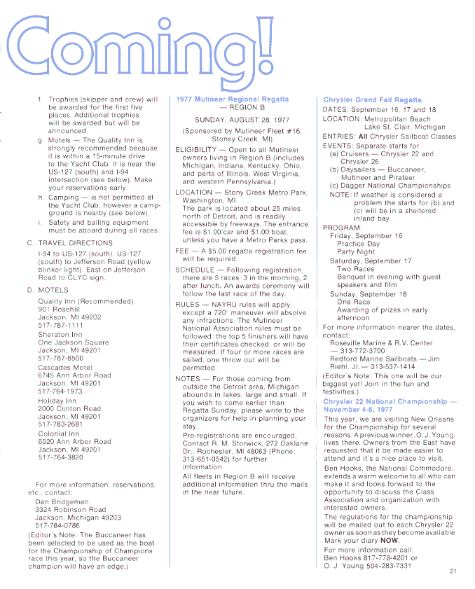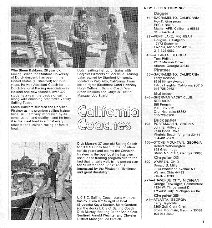 A publication dedicated to Chrysler sailboat owners and dealers. These editions cover the span of time from 1974 through 1978, the high point in the production of Chrysler sailboats.