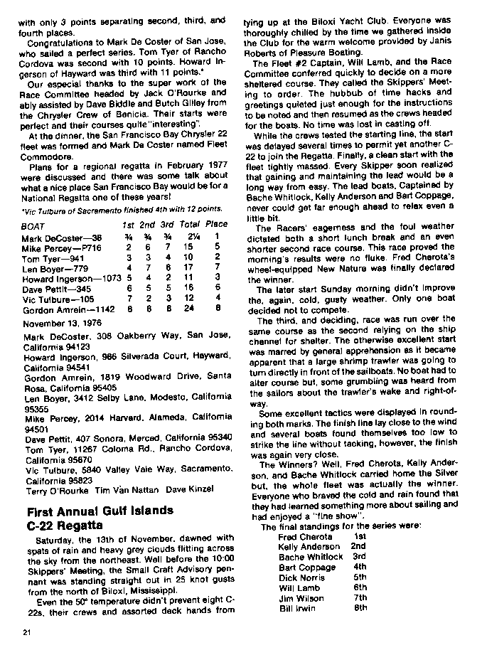 A publication dedicated to Chrysler sailboat owners and dealers. These editions cover the span of time from 1974 through 1978, the high point in the production of Chrysler sailboats.