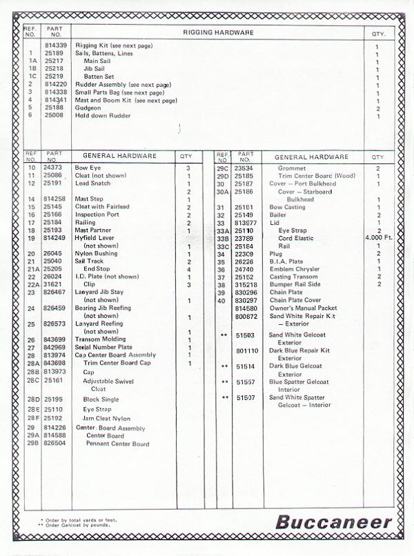 Here is a page from the Buccaneer Class Association Rules saved as a .pdf file: Genspec.pdf