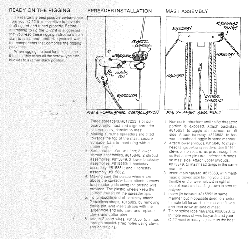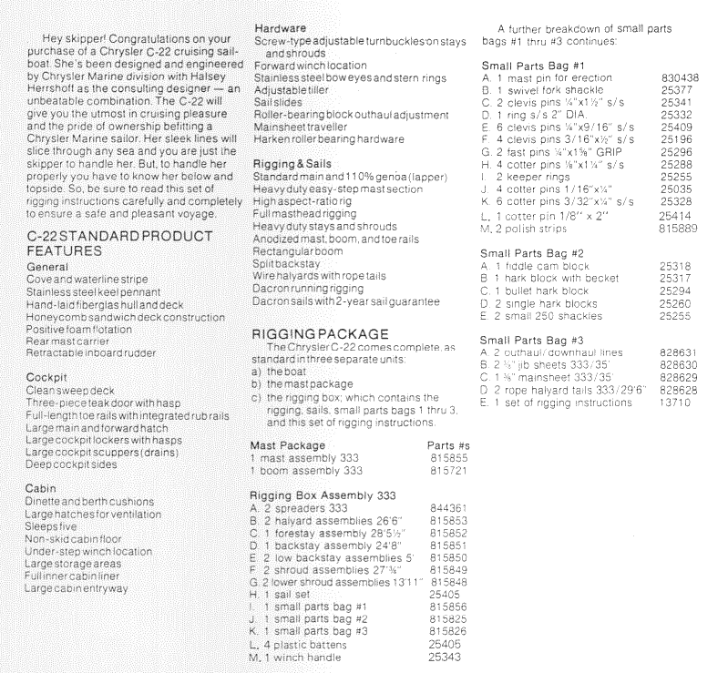 Hopefully, this manual will come in handy for you, as it contains a great deal of information regarding the contents of the original boat as well as the intended rigging and tuning for the C-22. Enjoy!