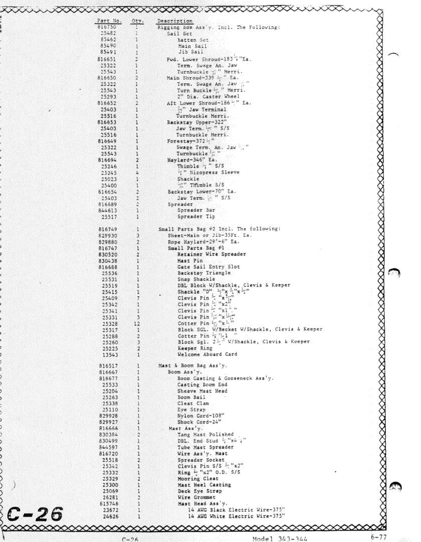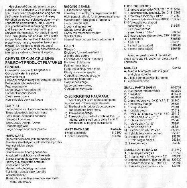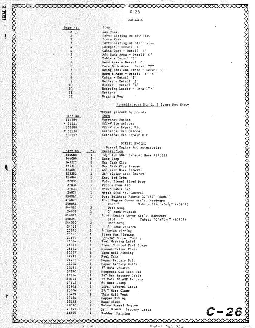 Hopefully, this manual will come in handy for you, as it contains a great deal of information regarding the contents of the original boat as well as the intended rigging and tuning for the C-26. Enjoy!