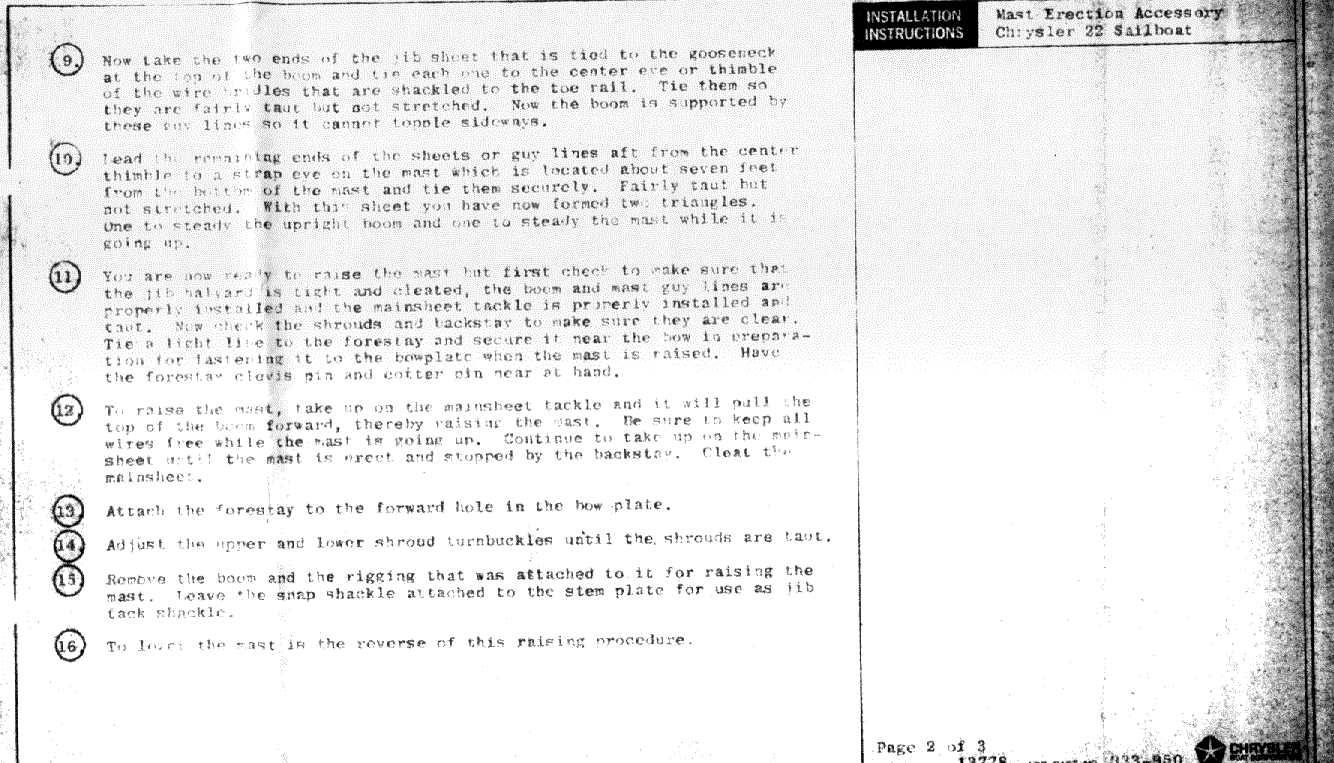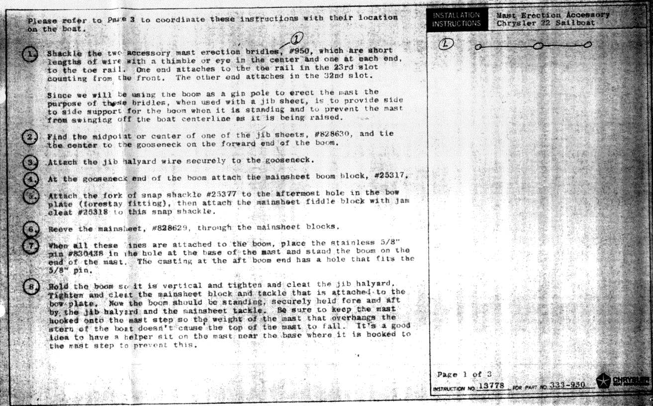 To view a copy of the instruction for Raising the Mast, click on the hyperlinks below. Please note that the "Mast Erection Accessory" drawing was too large to scan in at once and is saved in two parts.