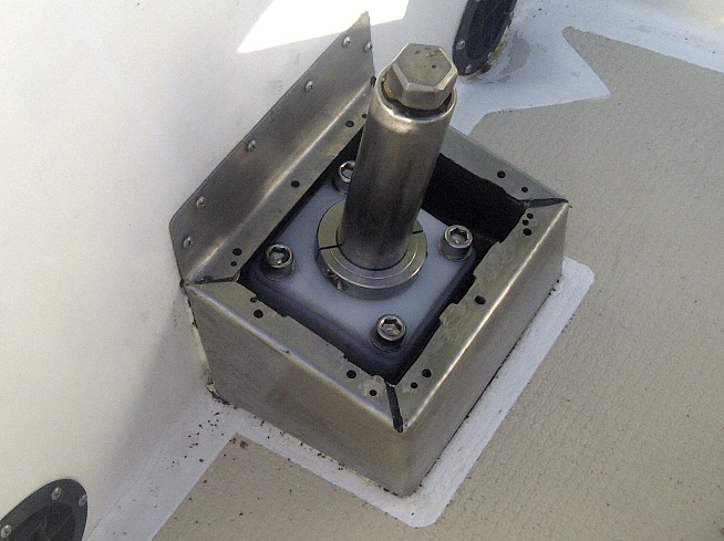 The bottom rudder bearing has most of the load and the new support will ensure the bottom sleeve is solid during hard steering and the occasional grounding.