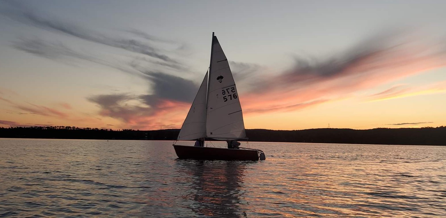 Out for an evening sail with my daughter in calm waters on the Pirateer