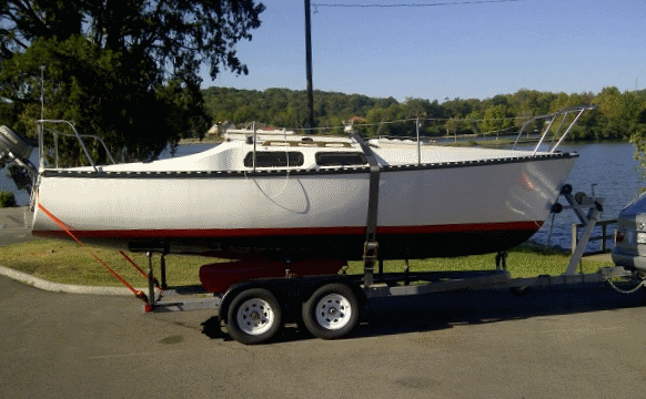 I'm adding couple more pics if it helps. The first is my old trailer, with boat. Second and third show final product. The keel is visible and you can see how it rests on rollers. Resting on the rollers, with my trailer, the bottom of the keel is probably very close to the same height as the side rails. This is the trailer that came with my C22, and is not the original Chrysler trailer. It's possible that some trailers may allow for the keel to drop a few more inches, but at some point you hit the trailer axle. I know you want to keep the boat as low as possible for launching. I can tell you that with my boat it's not possible to simply back into the water and expect the boat to float off. I always strap launch....another photo