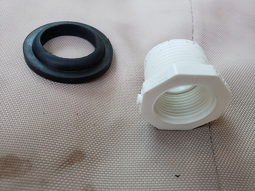 Next, I went to the hardware store and bought some 1" threaded plumbing pieces and some rubber gaskets that fit tightly around them and plugged the whole resulting in a hard plastic guide where the back stays go through.See pictures I may put some glue on to make sure they don't slip. They are pretty tight though.
