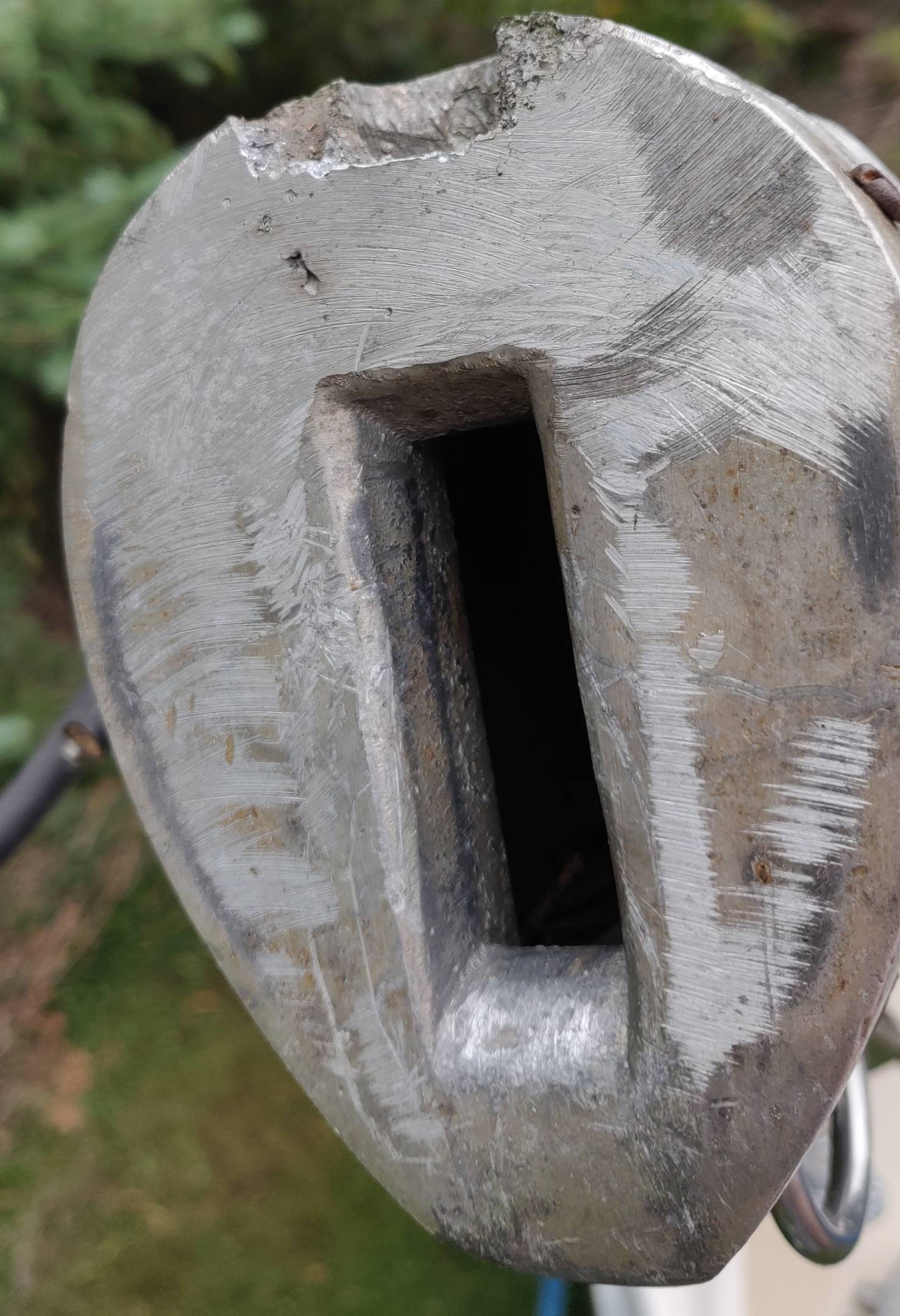 So after a few weeks of doing repairs it was finally time to take our C22 out this weekend past for the first time. We got to the marina and had some friends there to help step the mast. The previous owner constructed a dedicated gin pole, and when I inserted it into the mast, part of the mast foot snapped off (no pressure was applied). I don't have any pictures at the moment, but its at the very bottom of the mast (where you insert the pin/boom used to step the mast). Unfortunately this meant that we were not able to get the boat in the water, but now I need to replace it. The hook part that is on the deck is in good shape and I don't know that I really want to covert to a hinge system.