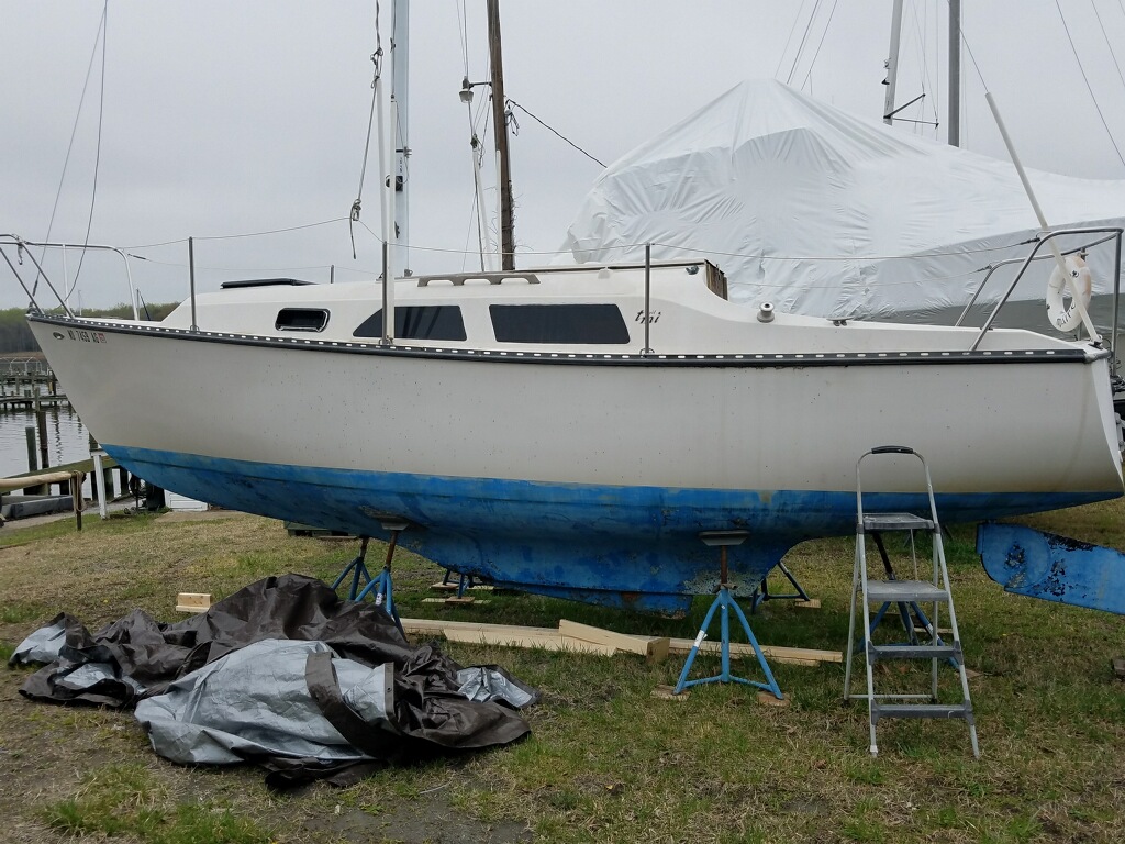 Interesting boat, I see similarities to the C26. Rudder looks the same, keel also. Does it have a 2 piece iron shoe at the toe of the stub keel containing the pin for the swing keel? Ballast was a concrete/ lead buckshot mix on the C26. Is that damage at the rear of the fixed keel? C26 hull was not cored, cabin was cored with a phenolic resin saturated paper product by the looks of it. Other deck areas seem to just have plywood bonded to the skin then covered with a layer of glass - not truly cored construction. Definitely no foam in my '78!