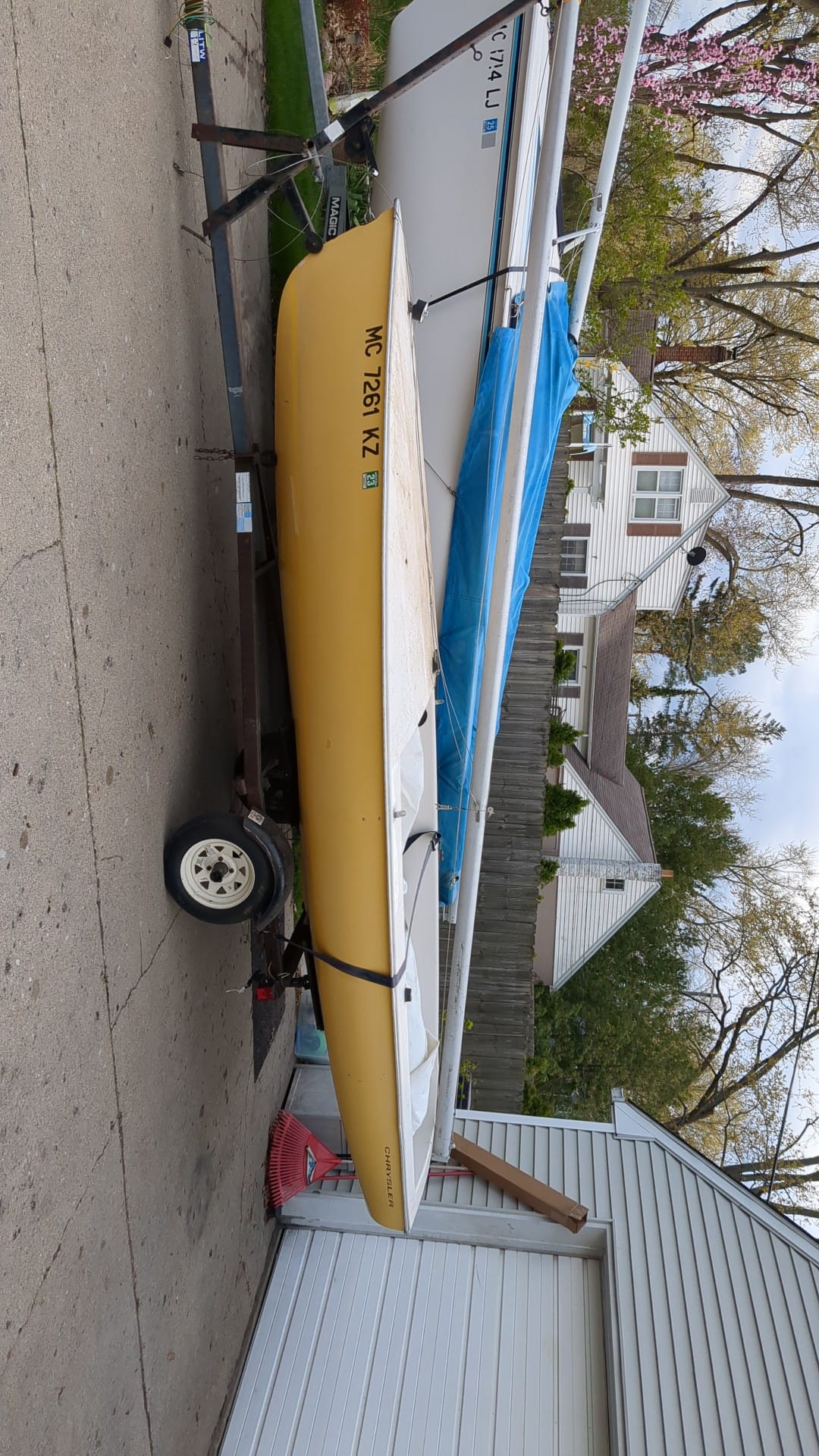 Hi. Picked up a Chrysler Mutineer, sans jib. Has Schaefer roller furling drum on deck and spin shackle up top, but no wire or sail. Not racing, so any cruise-able condition will do. Reasonable price, please. Quoted $3XX for new. Would like to cut that ... by a lot. Let me know what you have, and a zip so I can pay for shipping from you to me in 48381. Thanks.