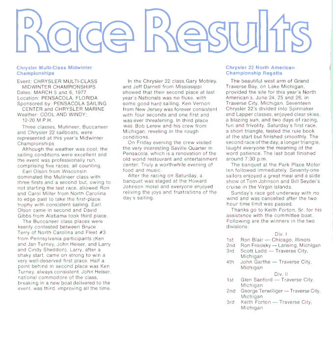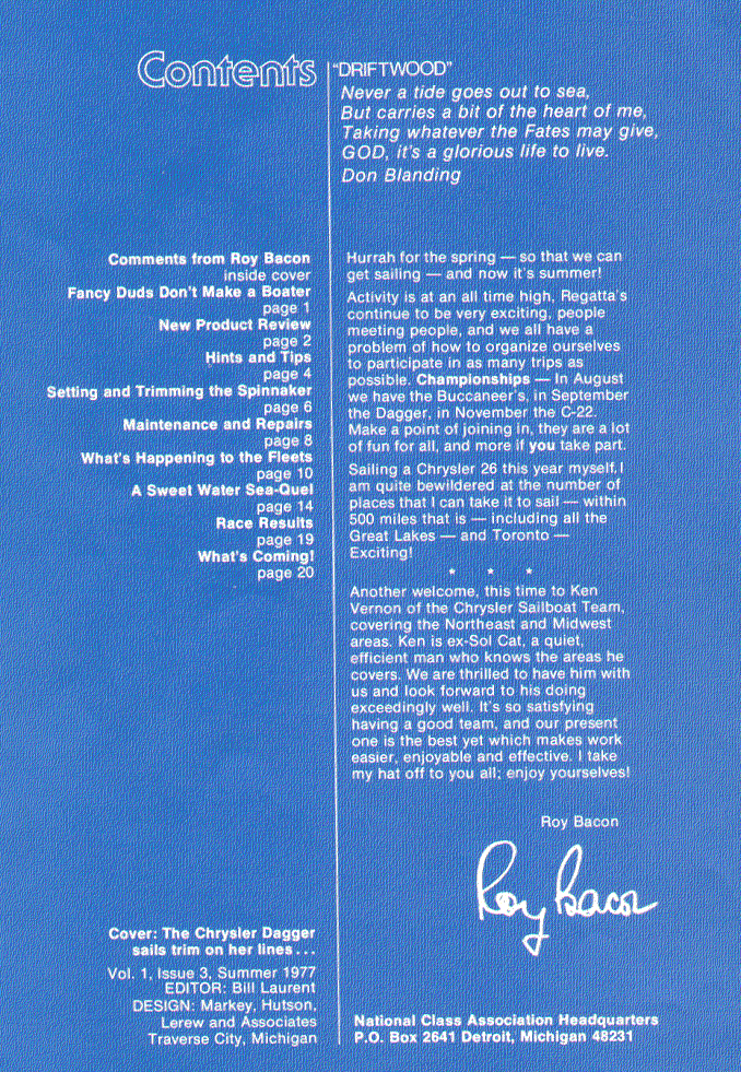 A publication dedicated to Chrysler sailboat owners and dealers. These editions cover the span of time from 1974 through 1978, the high point in the production of Chrysler sailboats.