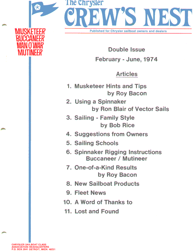 A publication dedicated to Chrysler sailboat owners and dealers. These editions cover the span of time from 1974 through 1978, the high point in the production of Chrysler sailboats.