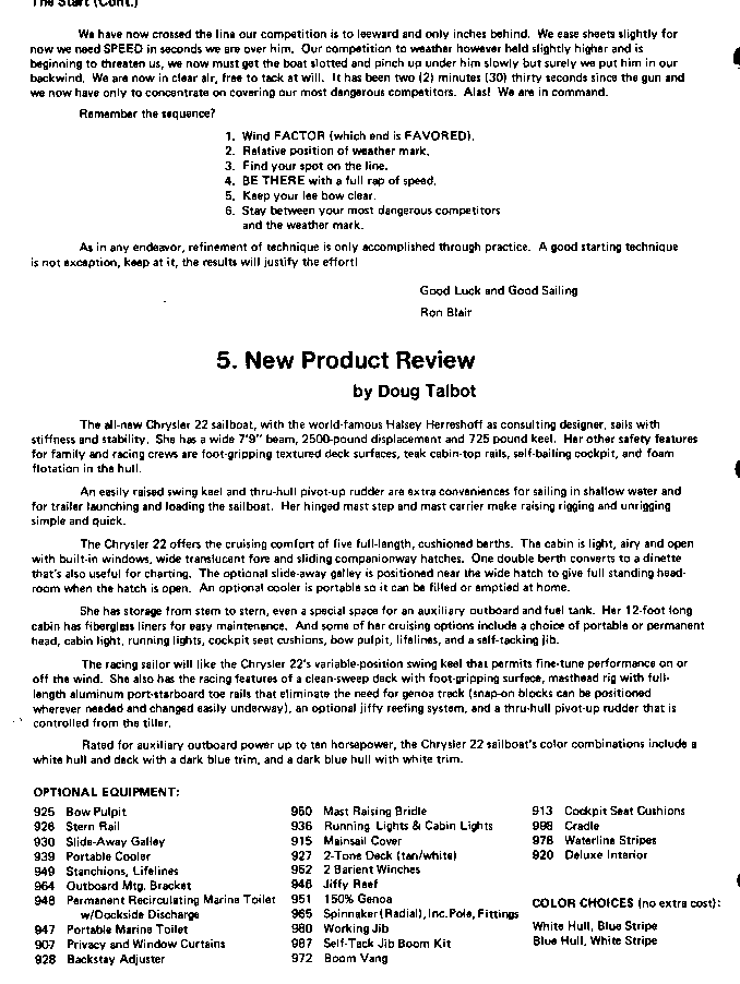 A publication dedicated to Chrysler sailboat owners and dealers. These editions cover the span of time from 1974 through 1978, the high point in the production of Chrysler sailboats.