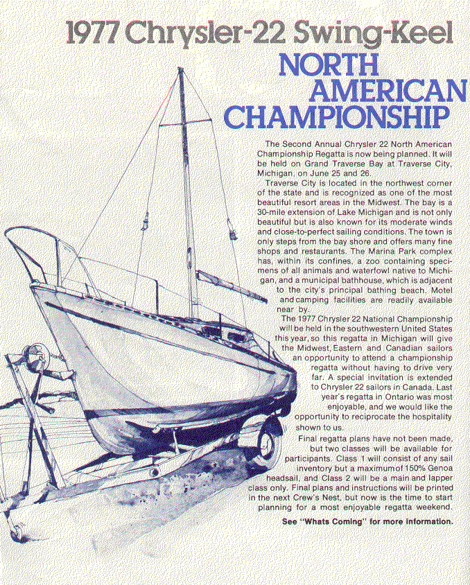 A publication dedicated to Chrysler sailboat owners and dealers. These editions cover the span of time from 1974 through 1978, the high point in the production of Chrysler sailboats.