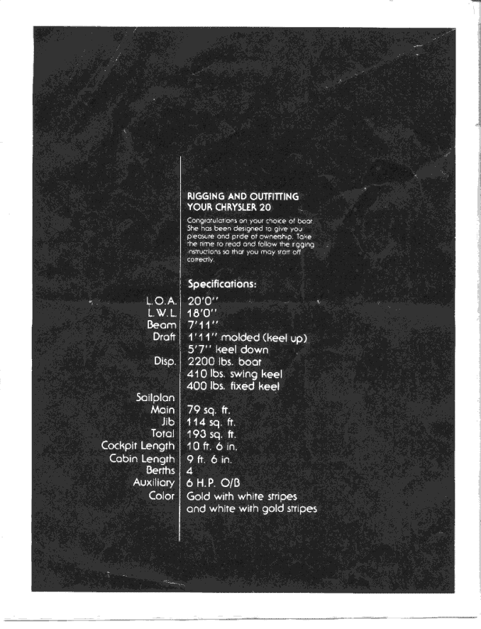 | DISCLAIMER: All documentation has been graciously donated by members of the Chrysler Sailors forum. It is not our intent to infringe on copyrighted material. The goal is to freely provide information that is generally no longer commercially available. If anyone has concerns please contact the Site Admin and we will discuss appropriate action. |